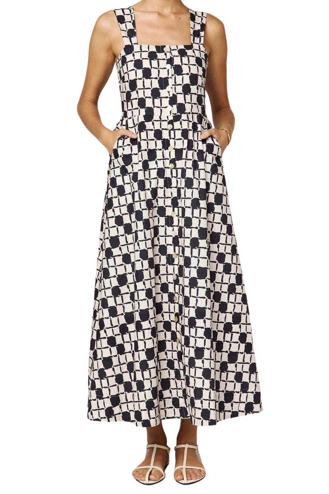 Effortlessly elegant, the Annette Ankle Dress is ethically made from 100% GOTS certified organic cotton. It features a flattering square neckline, button-down front, and a smocked back bodice for added comfort and ease. This ankle-length silhouette is perfect for both everyday wear and elevated occasions.