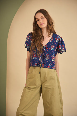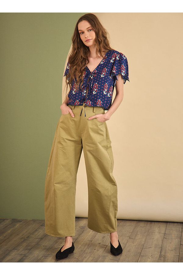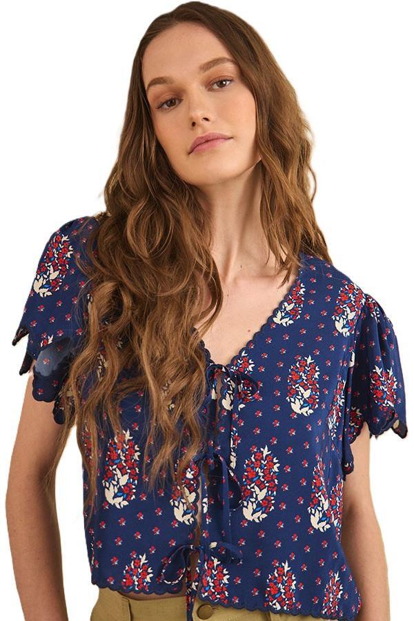 • Cropped tie front blouse