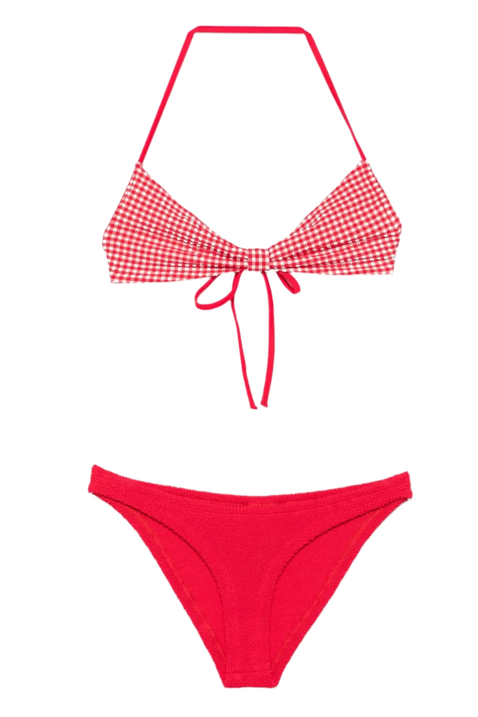 The Kacey bikini features an adjustable halter tie neck for a customized fit. The bottoms are crafted from our Original Crinkle™ fabrication with a dipped front silhouette with a skimpy fit.