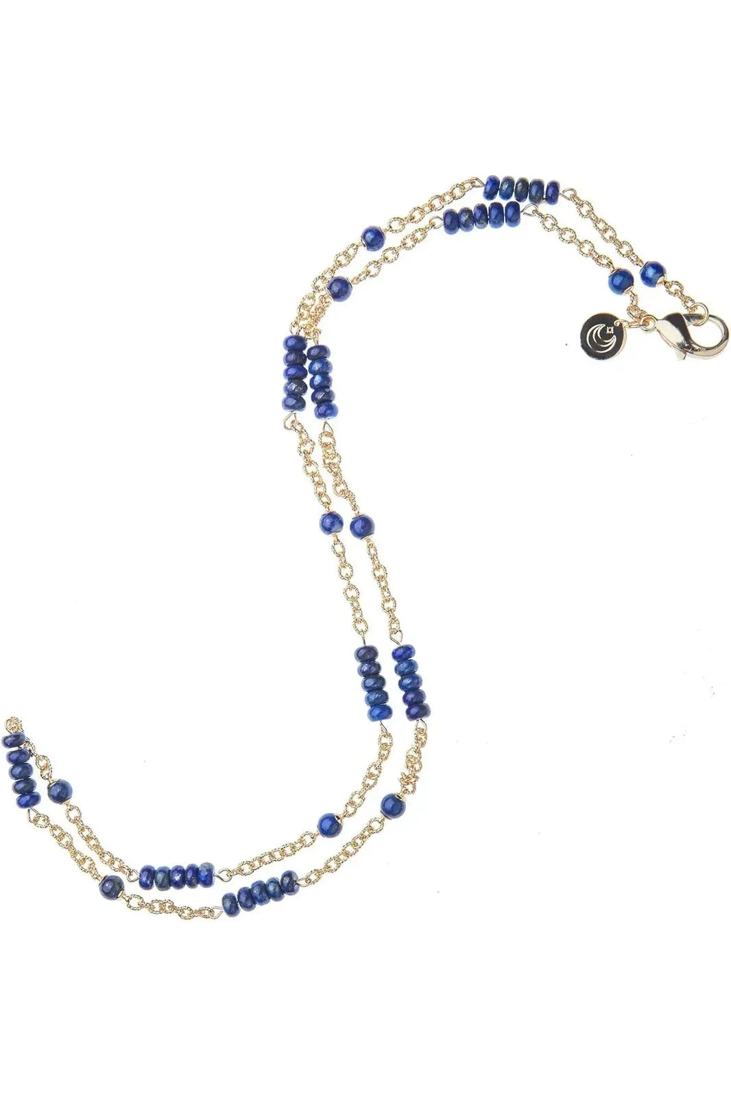 If you are like us, you loved digging through your grandmother's jewelry box, and there was sure to be strands of bead in there there. Inspired by those moments, this textured chain necklace is accented with carved lapis beads. Wear it long or double wrap it for a shorter look, you can either top off your neck-mess with this chain or attach your Jane Win pendant to the clasp.