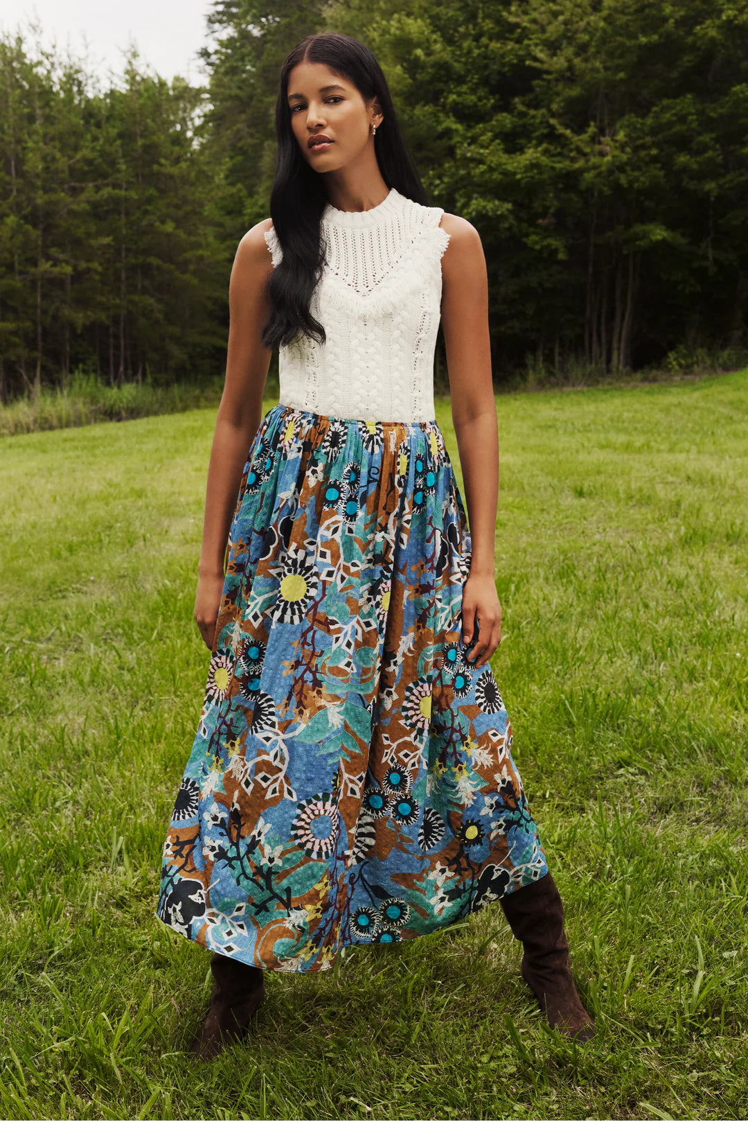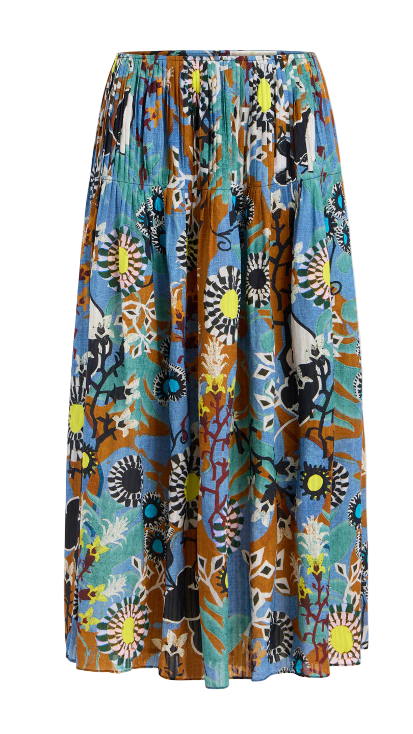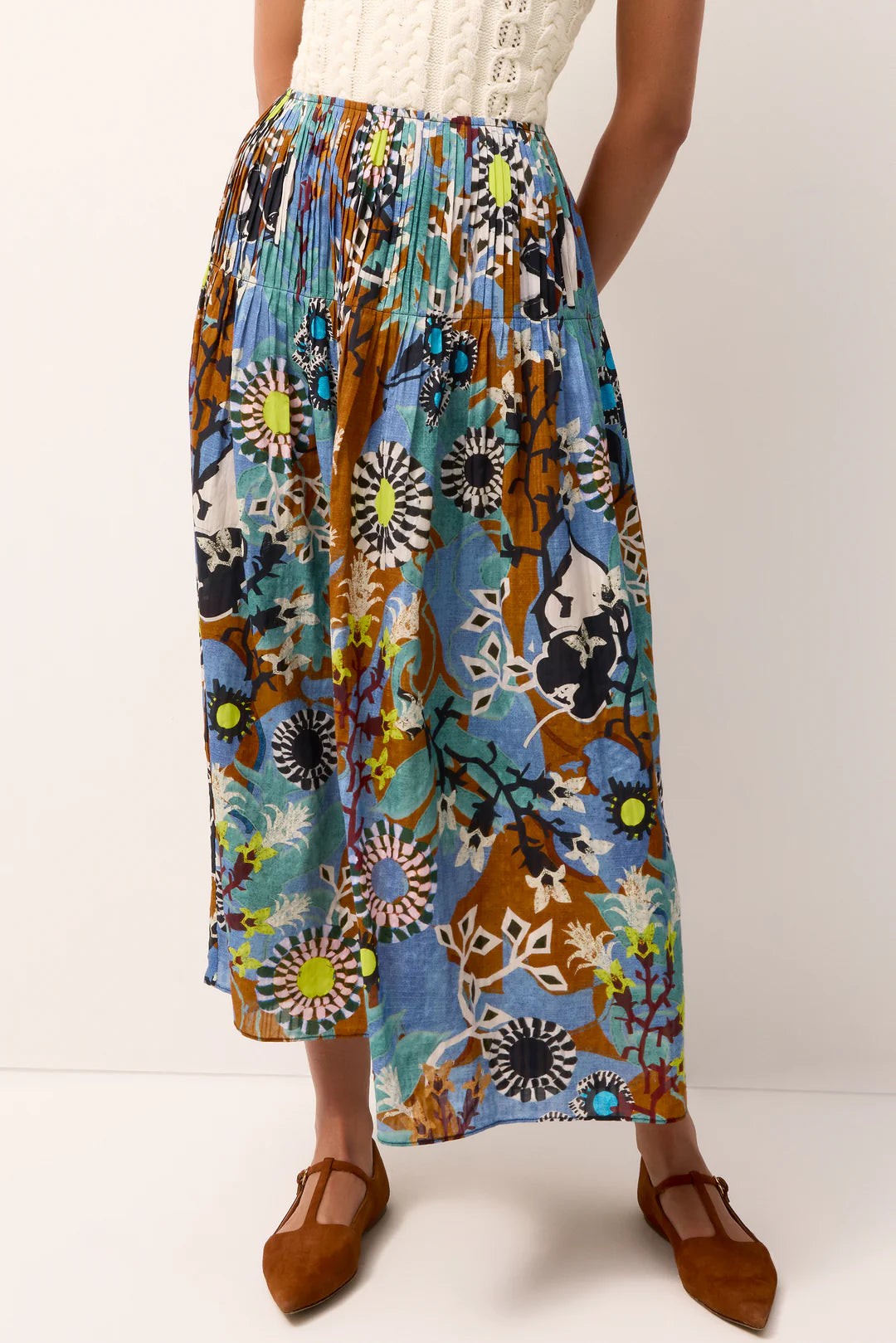 The standout detail of our new Wilson skirt is its micropleated drop-waist yoke, which adds subtle movement and dimension to the meandering florals of our Oasis Garden print.
