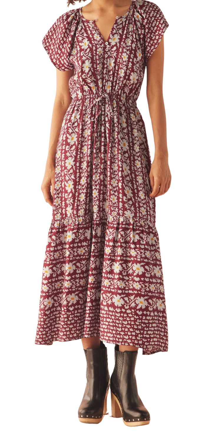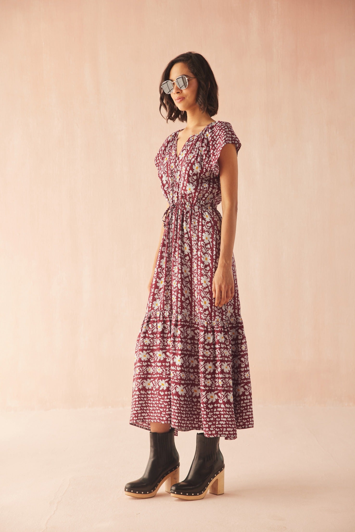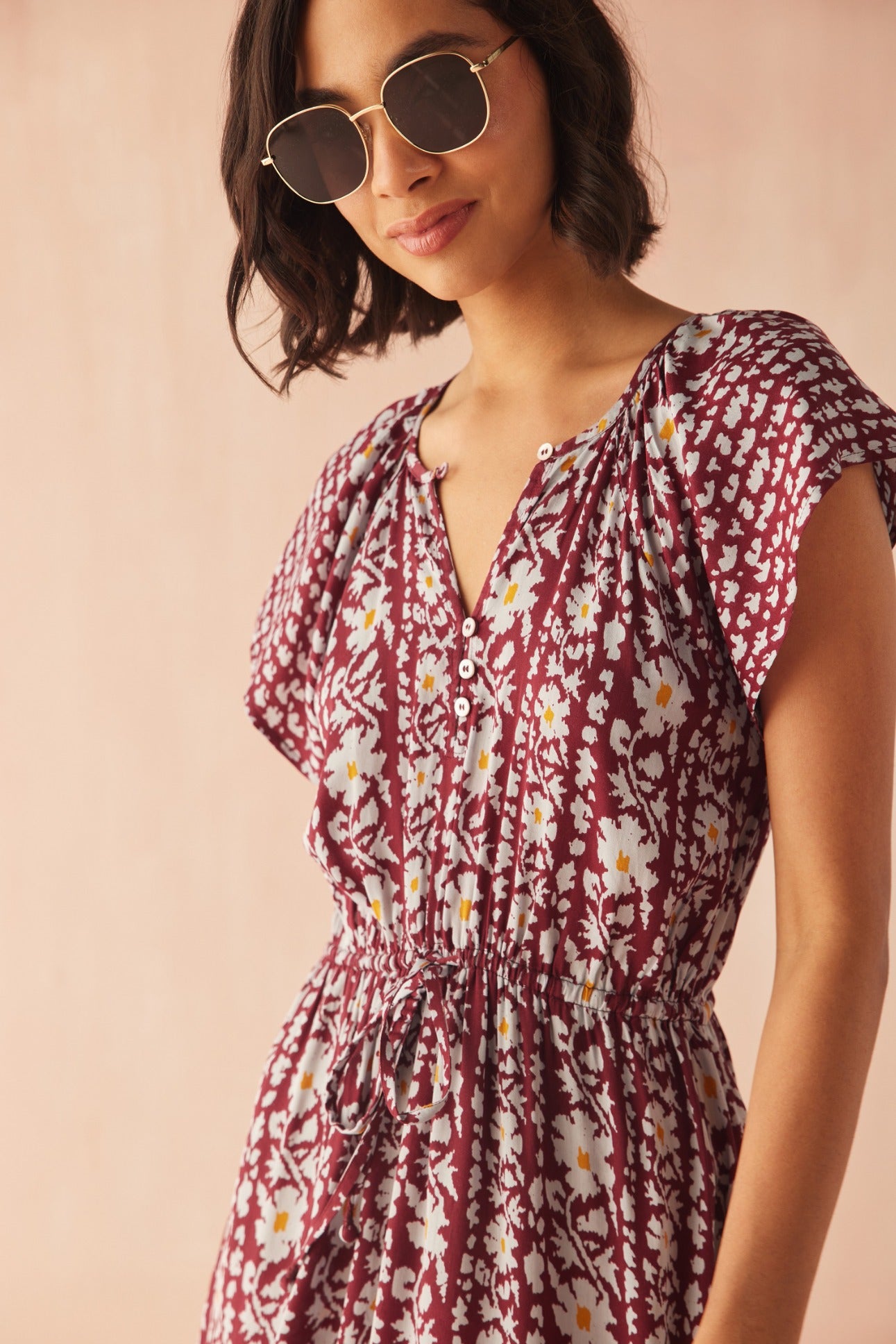 The floor is yours in this statement-making midi. A free-spirited silhouette gets a kiss of refinement from a cinchable waist, paired with a flowing skirt and delicate cap sleeves that frame the shoulders.