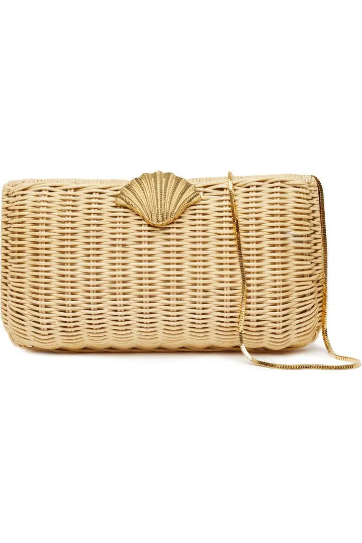 The Classica Clutch offers a sleek and minimalistic silhouette featuring a custom, gold plated scallop shell embellishment. The optional chain strap allows you to alternate wearing this style as a clutch or shoulder bag.