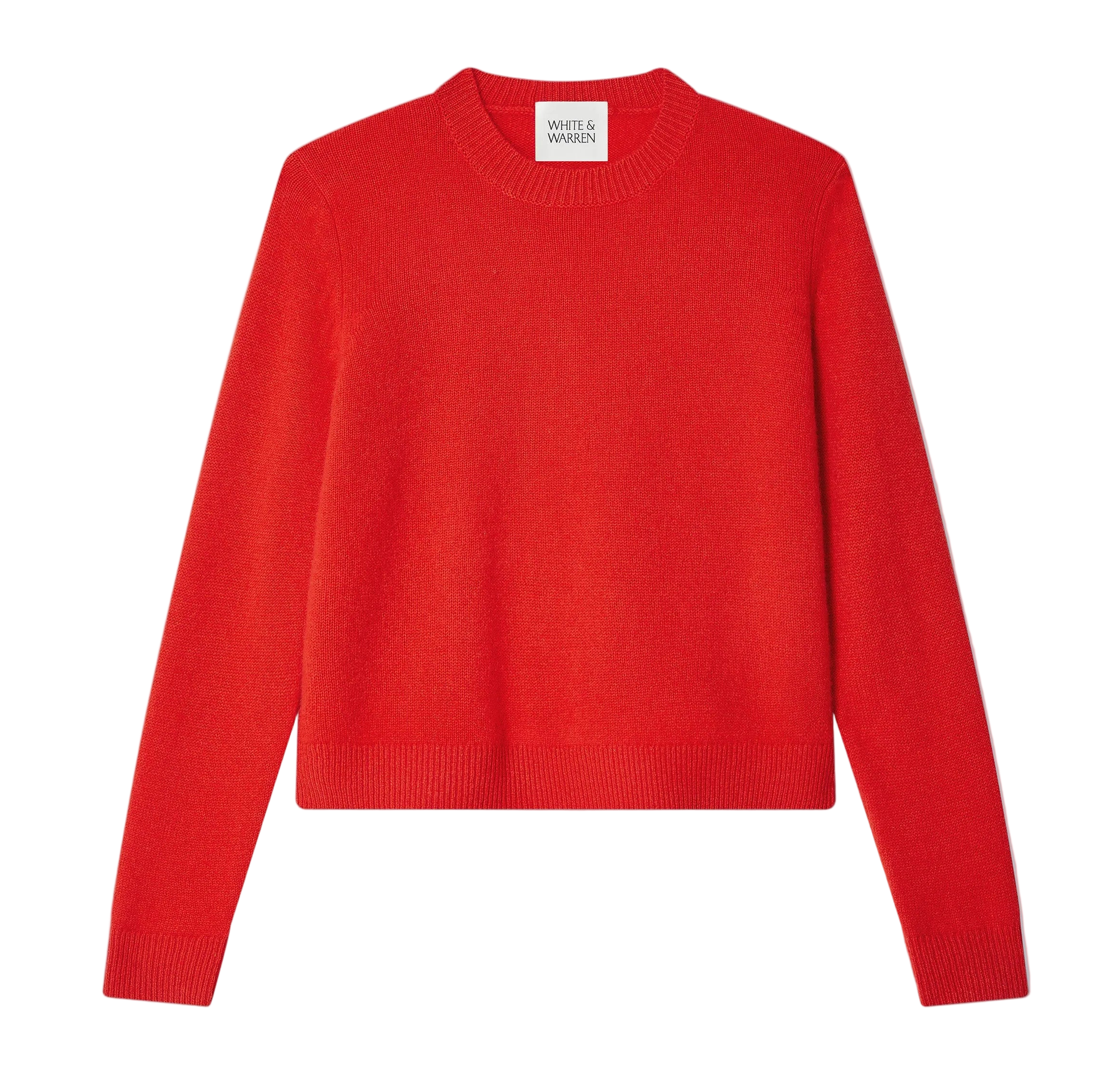 White & Warren Cashmere Rib Trim Crewneck, French Red